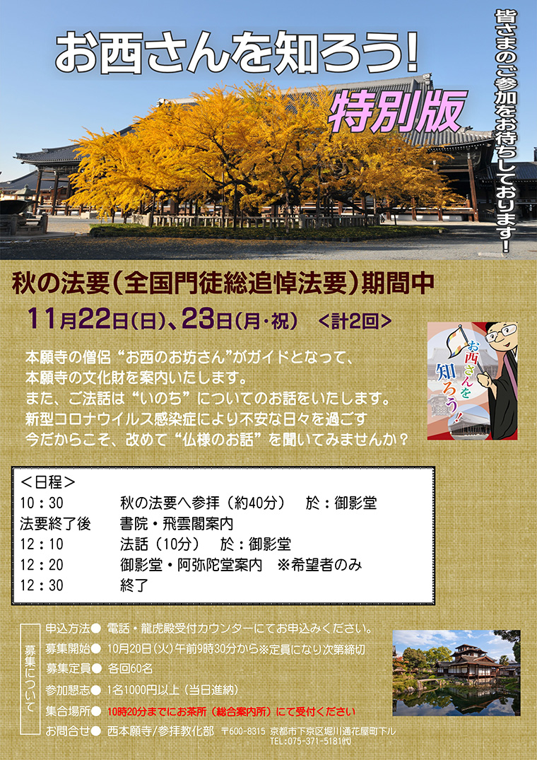 お西さんを知ろう!特別版<秋の法要(全国門徒総追悼法要)> 開催のお知らせ