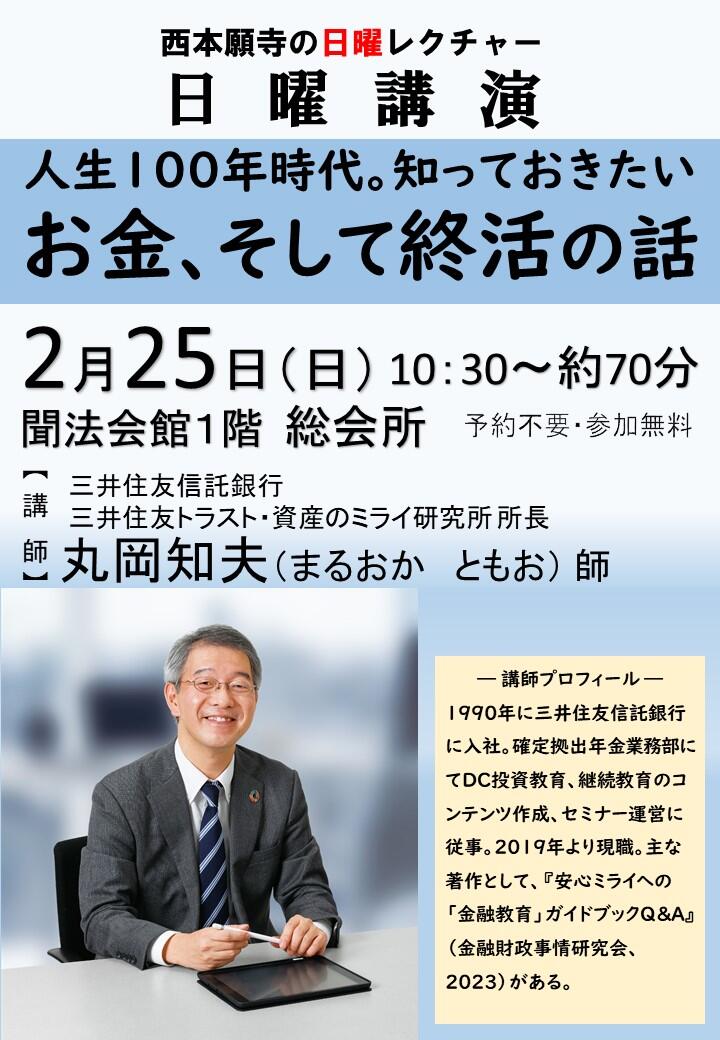 【2月25日開催】日曜講演「人生100年時代。知っておきたい お金、そして終活の話」丸岡知夫 師